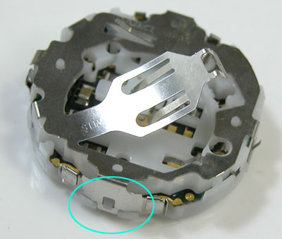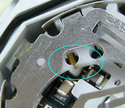 何故か意味不明な箇所にバネが??これがショートしているのか。でもピンセットで摘み出せない。