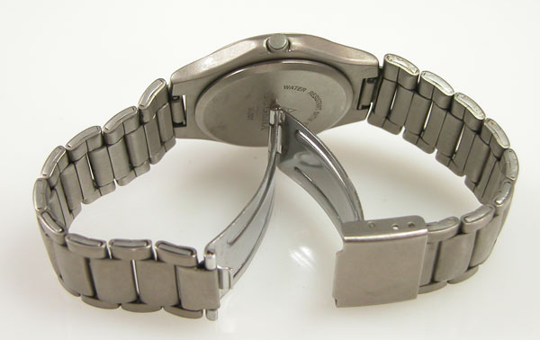 チタン無垢バンドに三つ折れバックル。