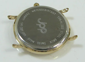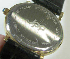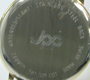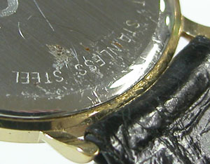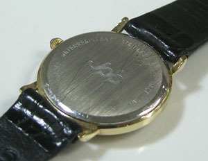 裏蓋記載。 格闘の跡が見えますが昔々、ある店の新参さんが開けるのに苦労していたとか。