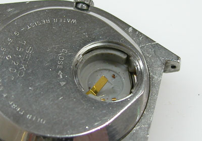裏蓋ははめ込みタイプで”電池フタ”が付いたタイプ。