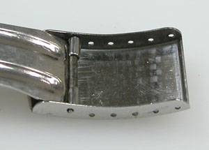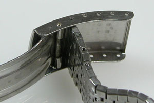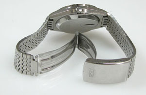 ステンレス無垢バンドに三つ折れバックル。