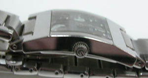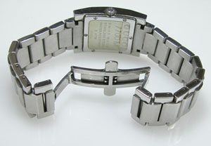 ステンレス無垢バンドに両開きバックル。