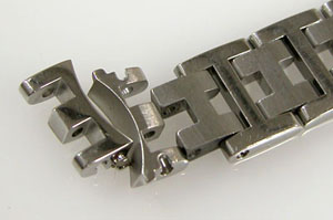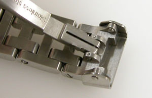 ステンレス無垢バンドに三つ折れバックル。