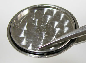 綺麗になったケースにムーブメントを戻して電池格納部をチェックします。