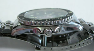 ステンレス無垢バンドに三つ折れダブルロック。