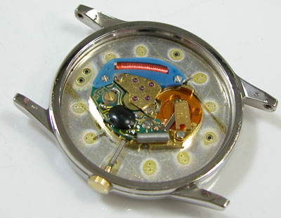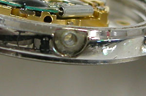 綺麗になったケースにムーブメントを戻して電池格納部をチェックします。