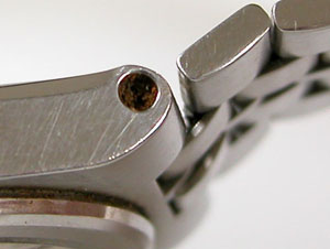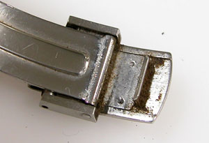 バックルやラグ部のネジ穴のサビ具合、この状態なら全体的にもかなり悲惨な状況下で放置されていた時計が偶然、文字盤が綺麗だったが為に外観を磨き倒してオークション出品された物を落札してしまったパターンか?