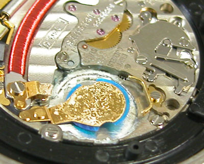 電池格納部もで粉でビッシリ、おまけに歯車にまで及んでいます。
