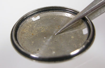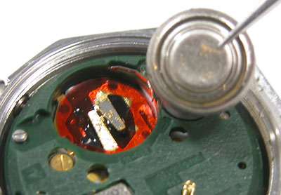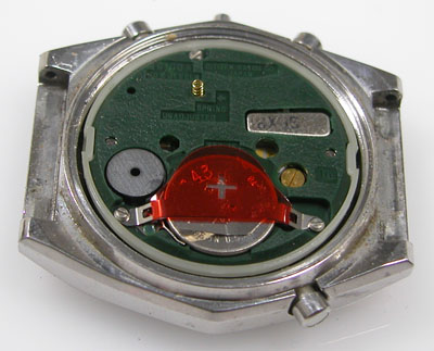 液漏れですがまだ乾燥していないので、まるで水にでも浸かった感じ。電池格納部は水が溜まっております。おそらく内部は各パーツにサビが浮いた状態でしょう。