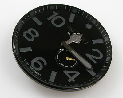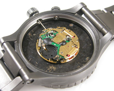 これが取り出した文字盤&ムーブメント。取り出せば「ツヤがある黒い文字盤」でした。