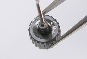 綺麗になったケースにムーブメントを戻して電池格納部をチェックします。