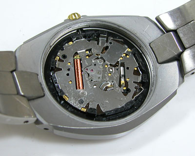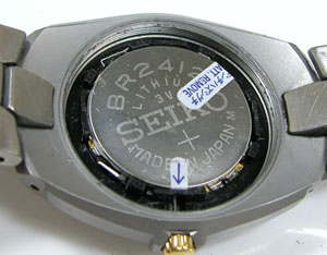 裏蓋を開けると電池がムーブメントを覆っています。