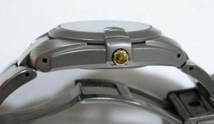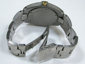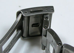 チタン無垢バンドに三つ折れプッシュバックル。