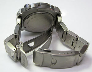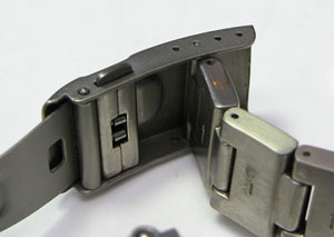チタン無垢バンドに三つ折れプッシュバックル。