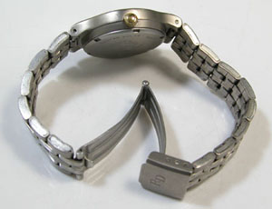 チタンバンドに三つ折れバックル。