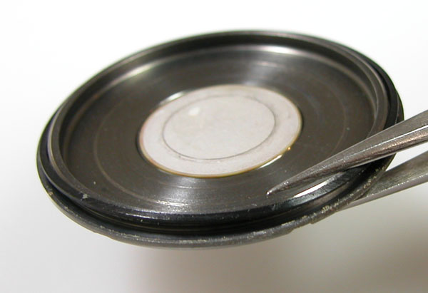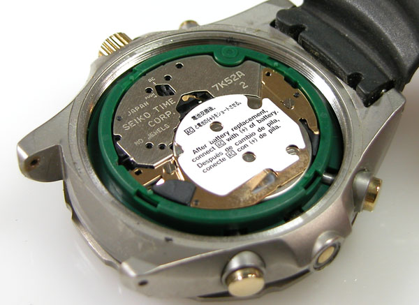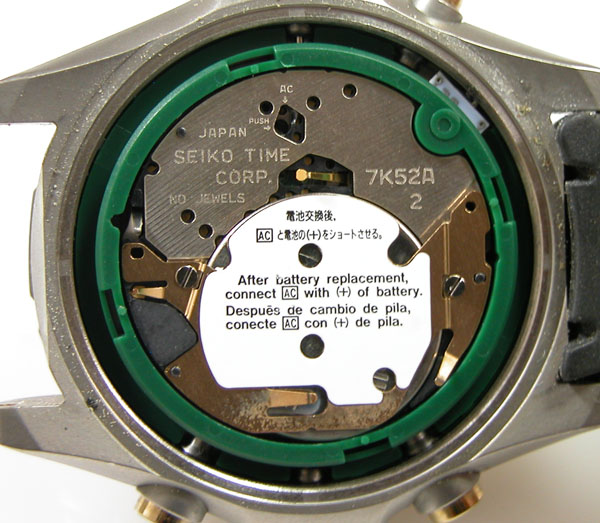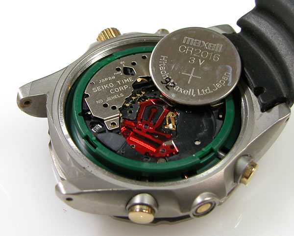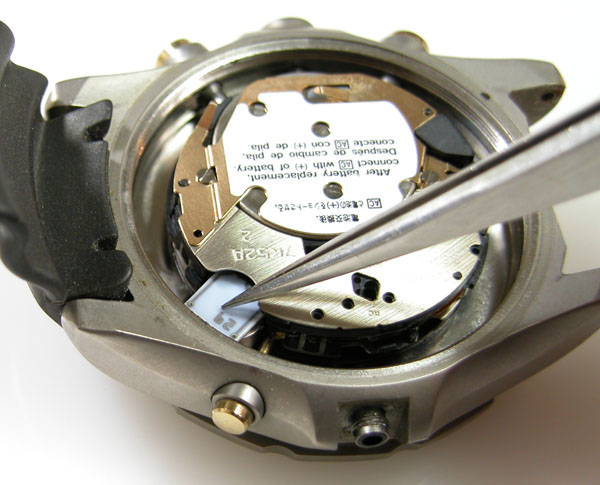 電池格納部をチェクします。雑貨時計ならリチュウム電池の下に酸化銀電池があったりましますがセイコーさんが、そんな作りはしないでしょう。