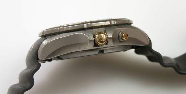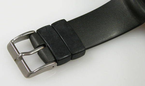 ウレタン・バンドですがケースと一体風の構造。この時計は私初めてみました。