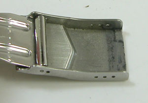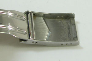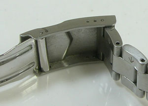 ステンレス無垢バンドに三つ折れダブルロック。