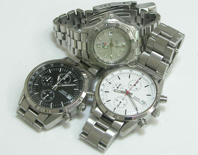 同じくステンレス無垢バンドに三つ折れダブルロック。どちらも未使用の様な綺麗な状態。