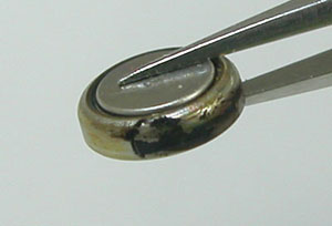 これがムーブメントですが電池が七色に変色していますね・・?