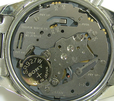 ムーブメントにも電池にも湿気や埃も感じられず綺麗なもの。
