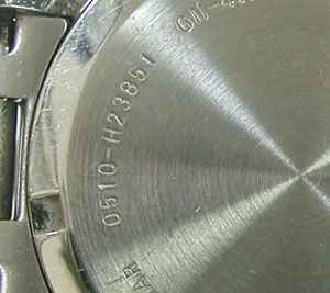 裏蓋はスクリューバックで右が裏蓋記載。