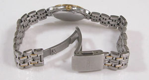ステンレス無垢バンドに三つ折れプッシュバックル。