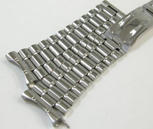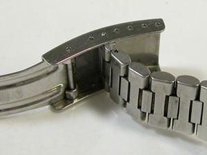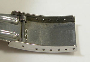 ステンレス板巻きバンドに三つ折れバックル。