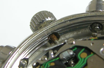 巻芯の根本が錆びて団子に、かなりの湿気が入った証拠。
