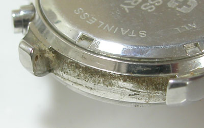 裏蓋の裏側も。裏蓋が軽く開きましたが「動かない」と直感。