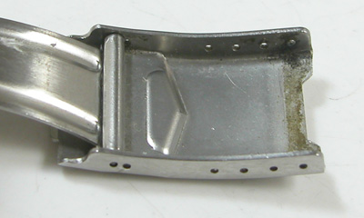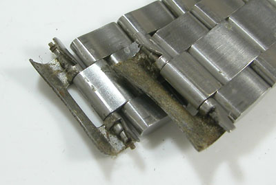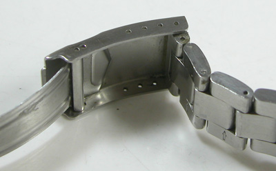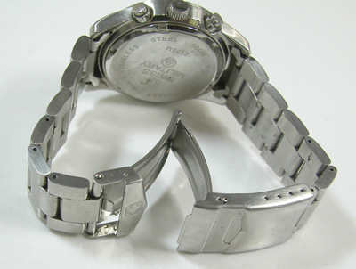 ステンレス無垢バンドに三つ折れダブルロック。