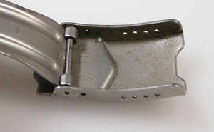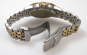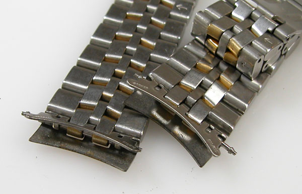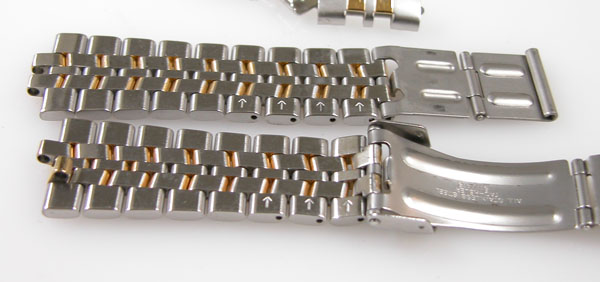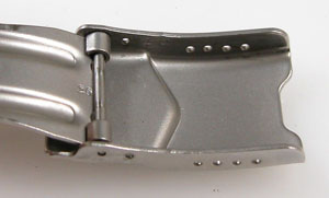 ステンレス無垢バンドに三つ折れダブルロック。