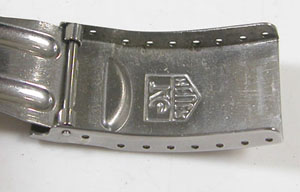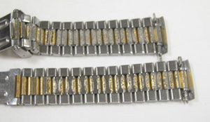 ステンレス無垢バンドに三つ折れダブルロック。