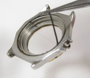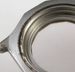 パッキンがケースの溝に沈み込んでサビに埋もれております。