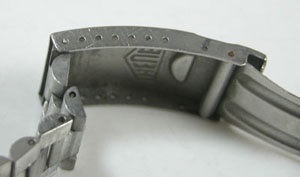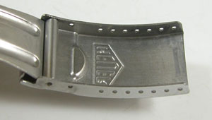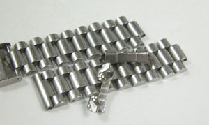 ステンレス無垢バンドに三つ折れダブルロック。