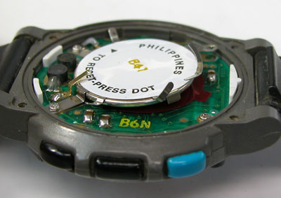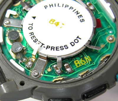 これがリセットスイッチかな・・・?TIMEXは、こういった情報は公開しないので分からないのです。よって電池交換で動かない確率はたかいですから、タイメックスのデジタルをご依頼の場合はレターパックの封筒を同梱される事をお勧めします。返送の送料のみ振り込んで頂く事になりますから注意が必要ですね。