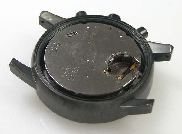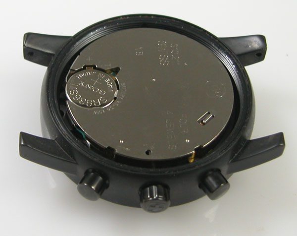 綺麗になったケースにムーブメントを戻して電池格納部をチェックします。電池を入れて動作確認ですが不動。このムーブは素人さんが開けても危険が無いくらい覆われております。