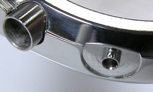 表側も。磨き甲斐のあるケースでした。プッシュボタンも綺麗になりましたからグリスを注します。