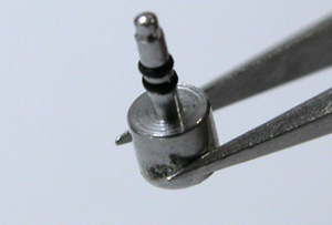 するとヤットコで摘んで引き出せます。ボタンを留めてあるリングを外します。