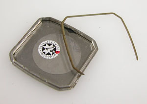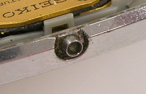 これがムーブメントですが電池押さえが浮いており、ネジが片方ありません。