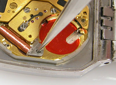 綺麗になったケースにムーブメントを戻して電池格納部をチェックします。
