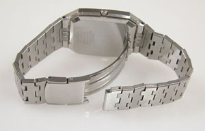 ステンレス無垢バンドに三つ折れバックル。