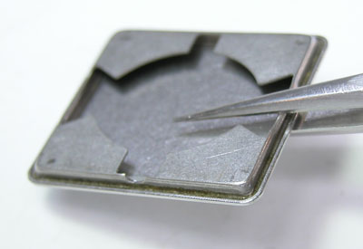 綺麗になったケースにムーブメントを戻して電池格納部をチェックして電池交換では動かず返却となりました。