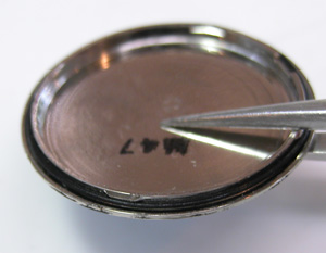 裏蓋は”はめ込みタイプ”で右が裏蓋記載。