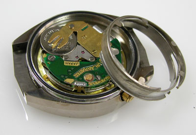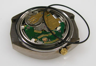 綺麗になったケースにムーブメントを戻して電池格納部をチェックします。
