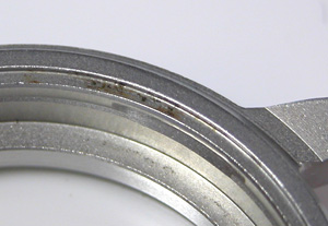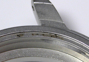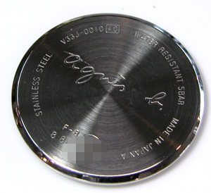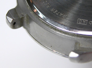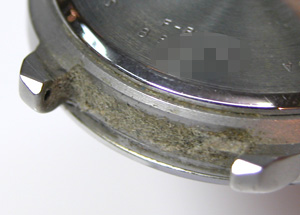裏蓋を見ればパッキンが効いているのが良く分かります。ケースの縁で錆びたところがあります。