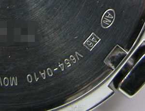 裏蓋はスクリューバックで右が裏蓋記載。