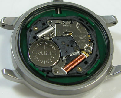 綺麗になったケースにムーブメントを戻して電池格納部をチェックします。