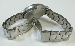 ステンレス半無垢バンドに三つ折れプッシュバックル。