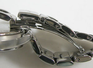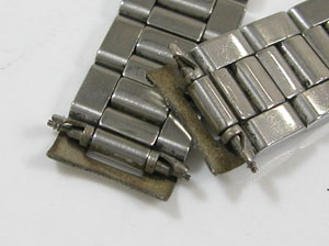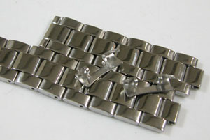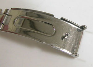 ステンレス板巻きバンドに三つ折れプッシュバックル。